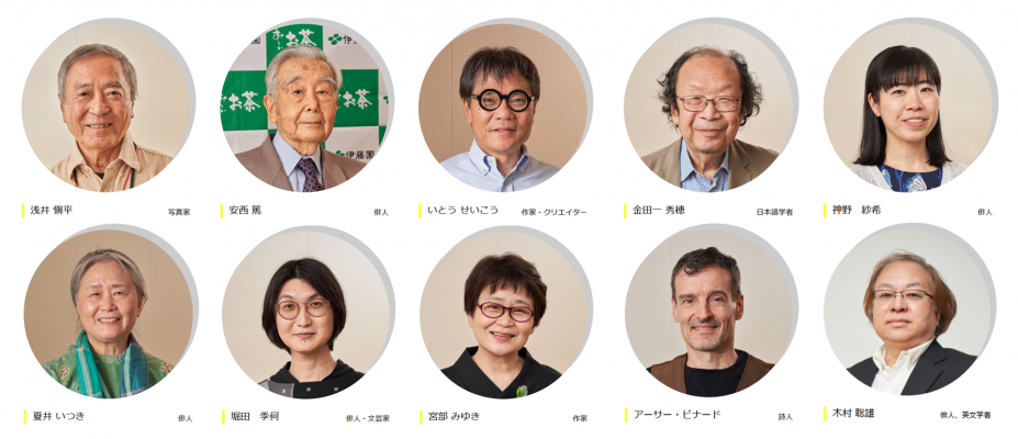 浅井愼平(写真家)、安西篤(俳人)、いとうせいこう(作家・クリエイター)、金田一秀穂(日本語学者)、神野紗希(俳人)、夏井いつき(俳人)、堀田季何(俳人・文芸家)、宮部みゆき(作家)