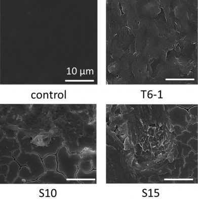 図1 T6-1、 S10、 S15によるP-Life含有PSシートの分解痕