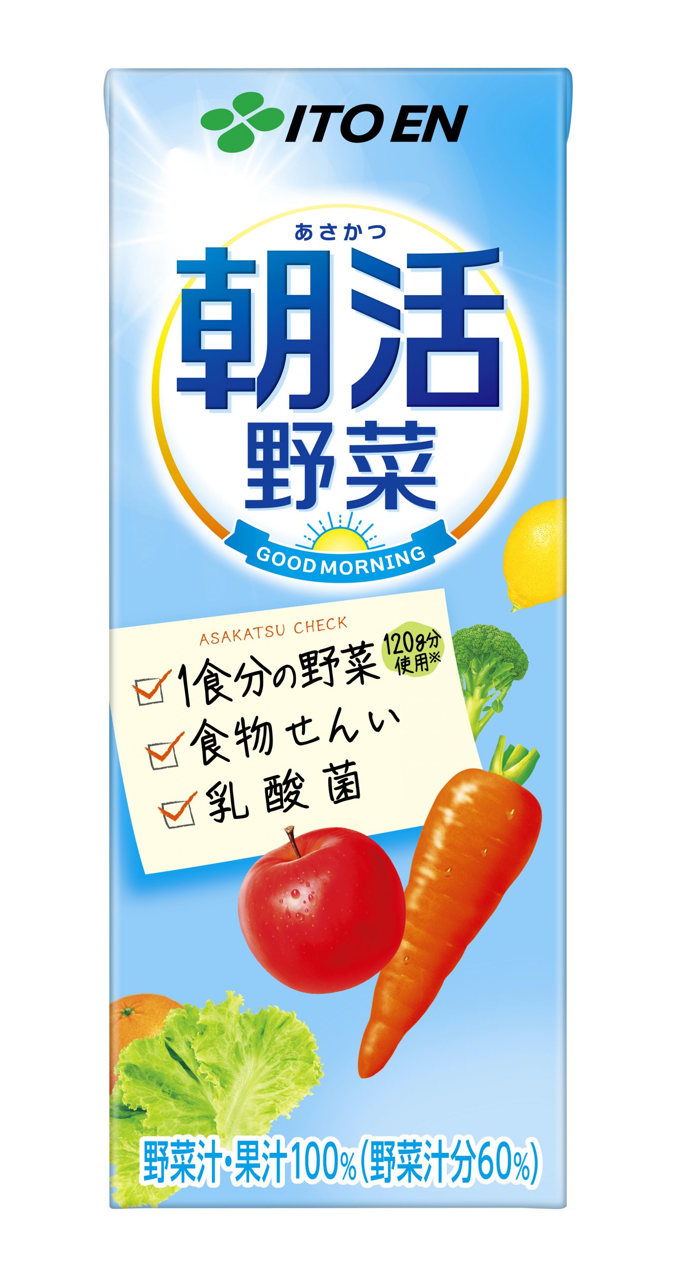 株式会社伊藤園(社長:本庄大介 本社:東京都渋谷区)は、忙しい現代人の朝の栄養補給をサポートする“朝専用”野菜飲料「朝活野菜」を、4月6日(月)より販売開始します。